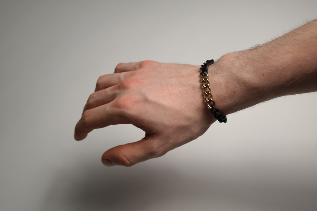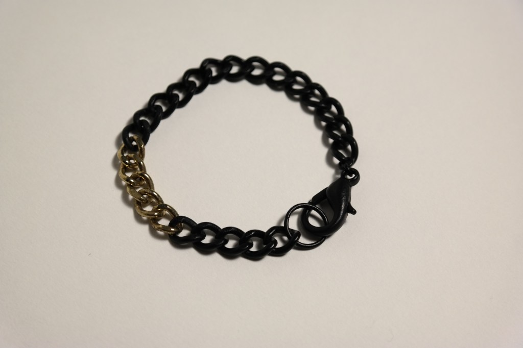 Over the course of months & years the uncoated brass tarnishes towards the same black as the other ‘generic’ links in the bracelet. Capturing the wearers attention in the need to maintain the piece, and in doing so re-orientating their attention towards the fading relationships.