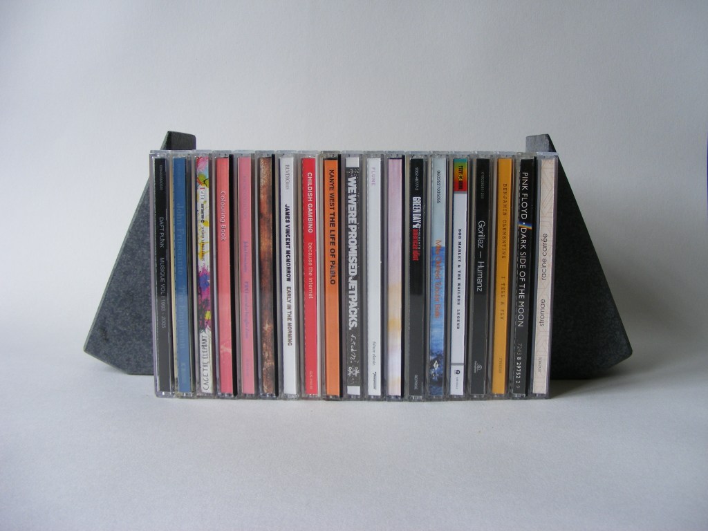 A music loving friend of mine was remodelling his living room, reducing the amount of cupboards and increasing open shelving, however, he was unable to find a suitably beautiful way to display his CD collection.
