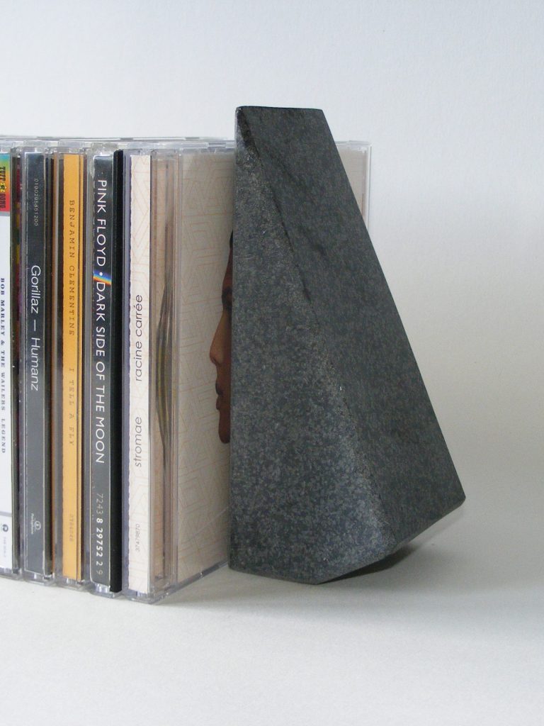 Physical music storage retains a unique habitual action, the flicking through of CD’s/Vinyls to chose what to play. However, no existing shelf display product considers or allows for this action. This product is designed to be used like bookends, but with the added function of a ‘flick’ that drops the CDs down at an angle and allows the user to browse through them before flicking them back upright again (should they wish).
