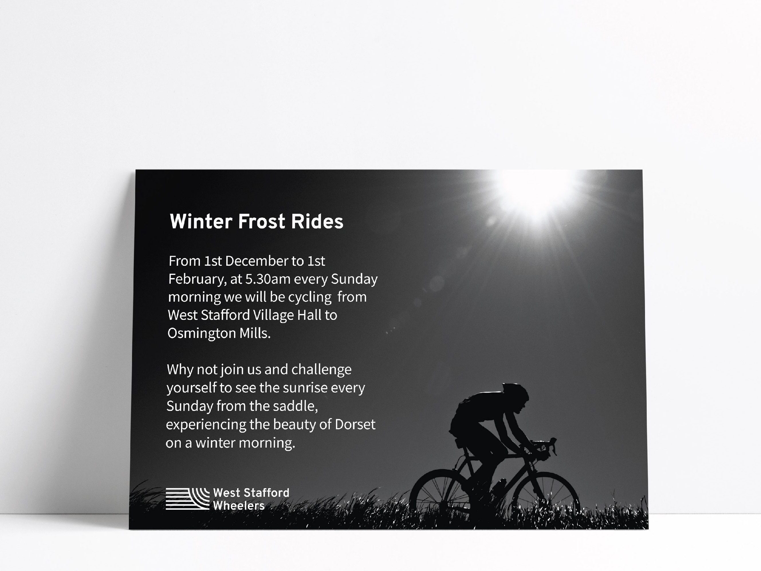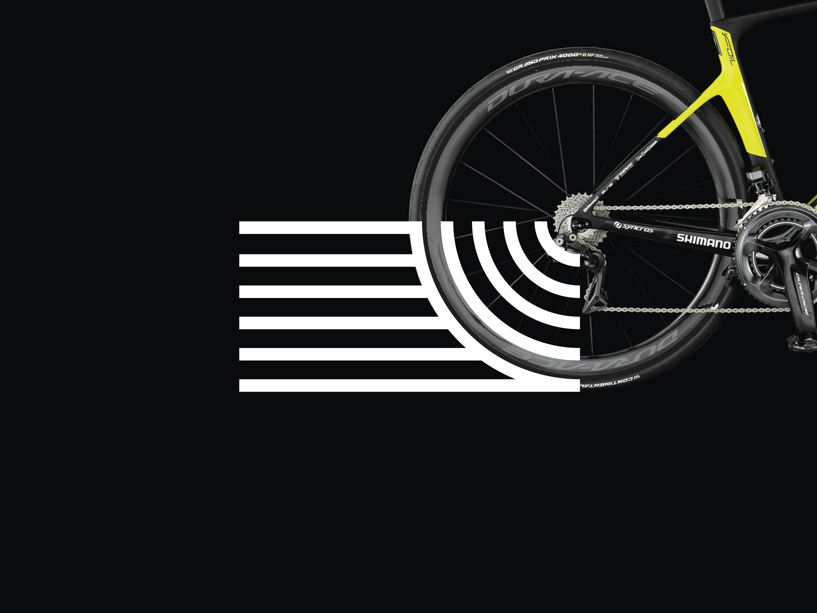 Logo design for a cycling club for impassioned riders, aiming to differentiate themselves from the local casual club. The logo manifests the sensations of speed, wind on skin, & spokes cutting through air that inspire these cyclists to their passion.