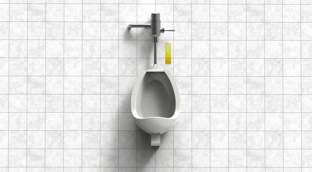 The result of this exploration was a simple public health campaign product, a Urinary Colour Chart sticker. All people (regardless of gender) experience idlness around urination, especially in public bathrooms where attention is often very narrowly focused to the wall/door infront of you. Unlike other campaigns, this design forgos textual information or statistics instead focusing the campaigns messaging entirely on the individual viewer and their specific circumstances.