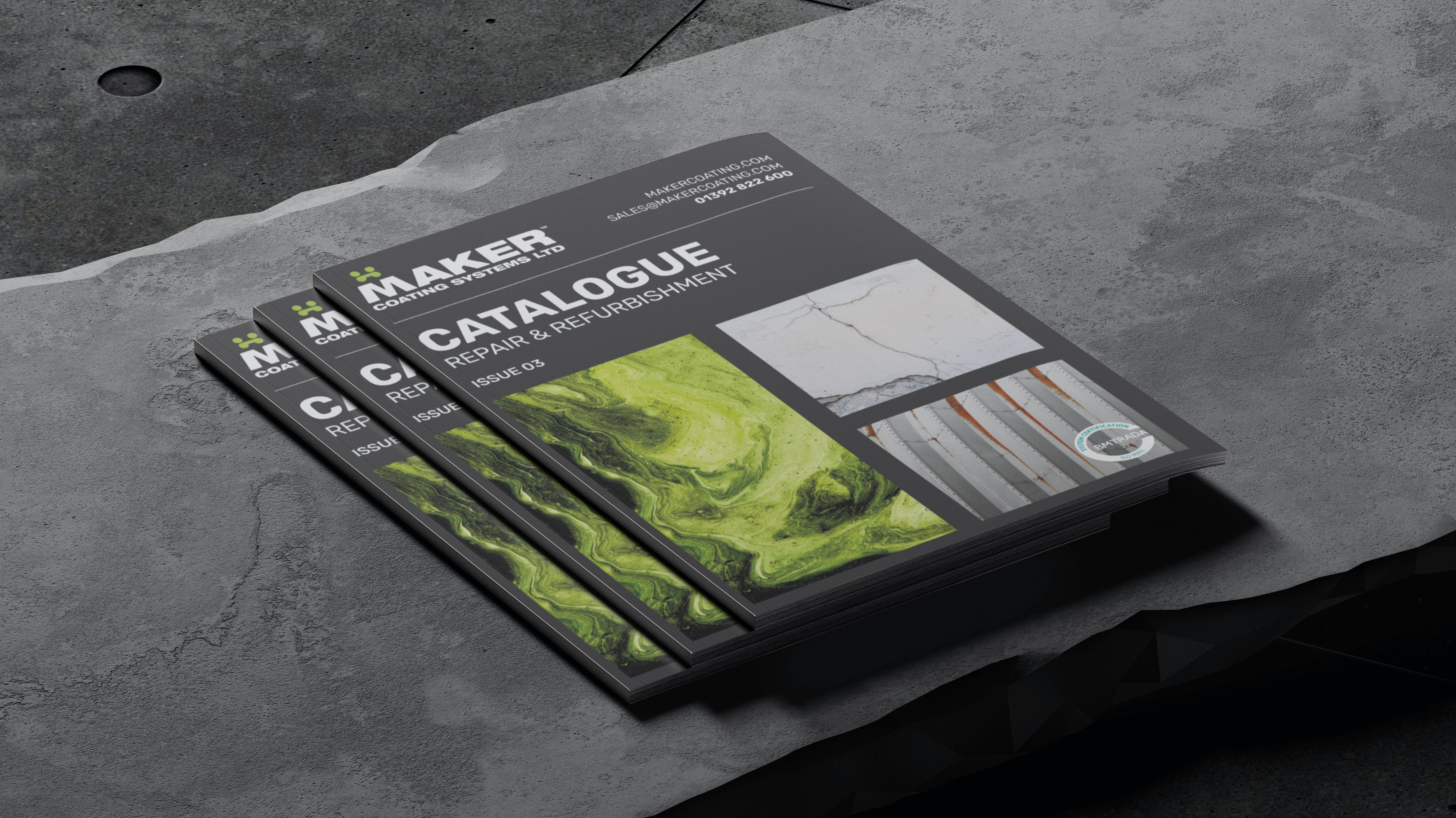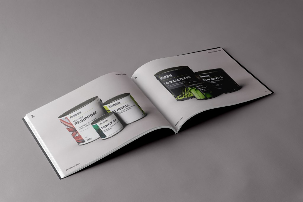 A clean industrial colour palette was developed to solidify Maker Coatings as a technical, premium brand (moving away from overuse of the Maker Green which was cheapening the brand).